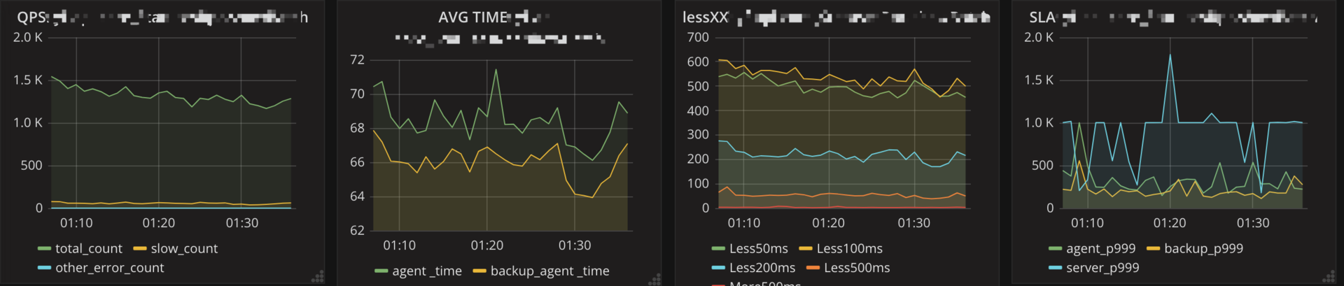 • 服务监控界面,可以查看服务的详细信息,比如QPS、AvgTime、耗时分布区间以及P999等。