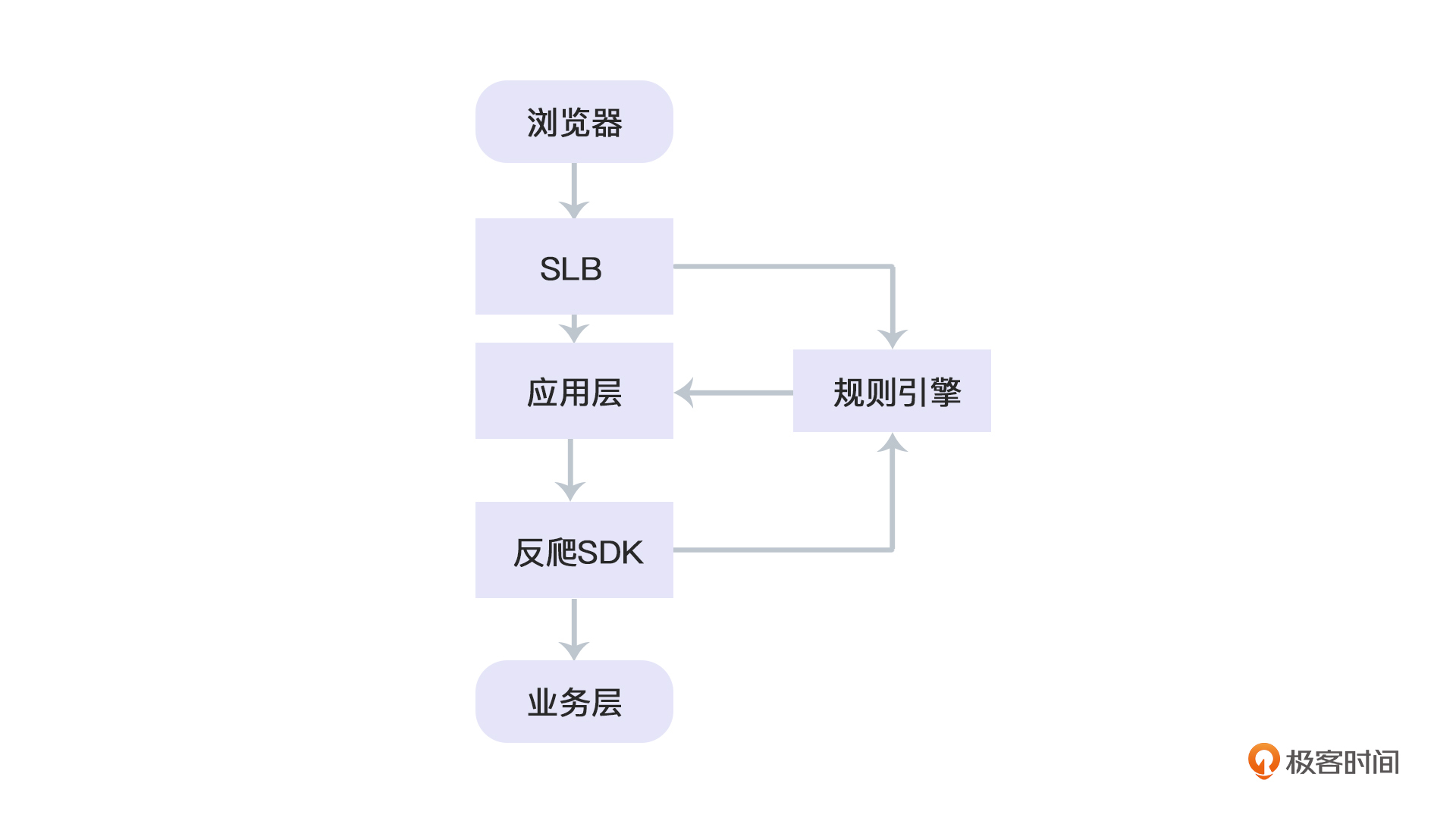 可以看到,规则引擎是独立于应用层而存在的。那也就意味着要么SLB调用规则引擎,要么反爬SDK调用规则引擎。这同时也意味着规则引擎的独立性极强,可以随时被熔断。