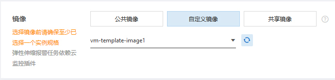 下一步是建立伸缩配置,这里主要是指定虚拟机模板,记得选取我们刚才创建好的自定义镜像: