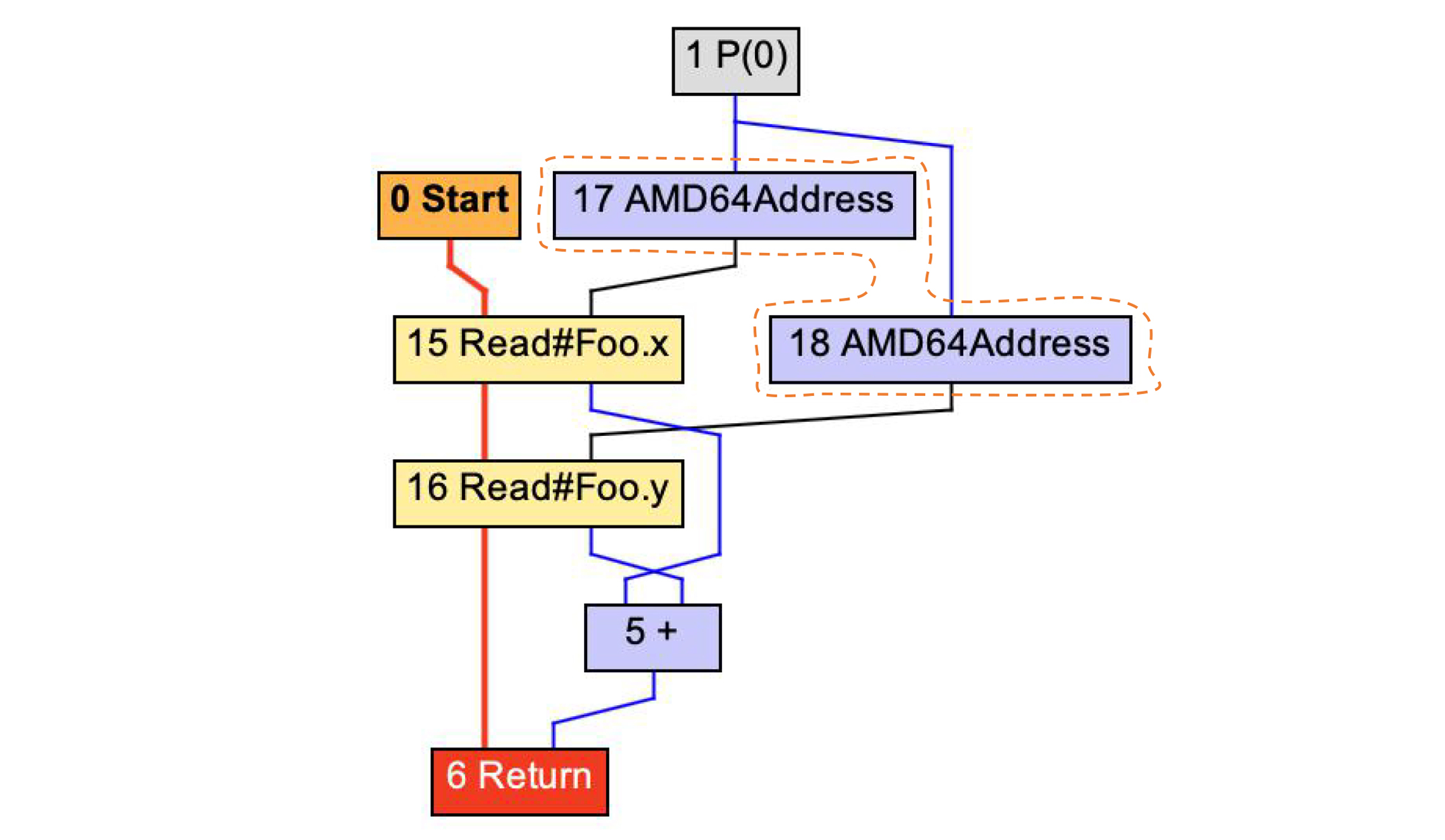 在Low Tier编译完毕以后,图2还会进一步被Lower,形成AMD64架构下的地址。这样的话,编译器再进一步翻译成汇编代码就很容易了。