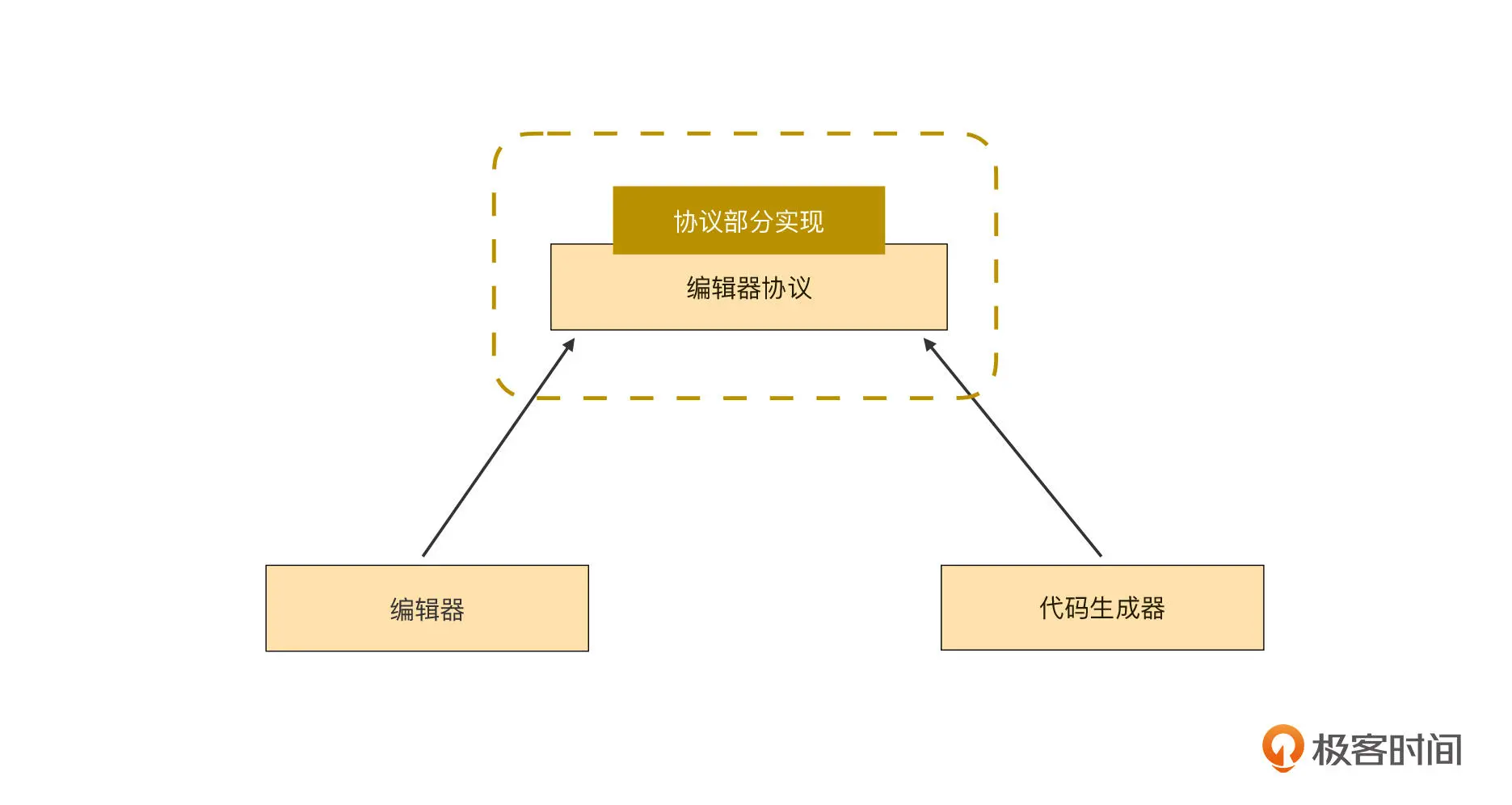 这个阶段,代码生成器与编辑器之间没有直接耦合。它俩各自与编译器协议产生耦合,布局器是编辑器的一部分。在这个架构下,只要各种布局器能严格遵守编译器协议来实现,那代码生成器就可以识别各个布局器的布局输出。