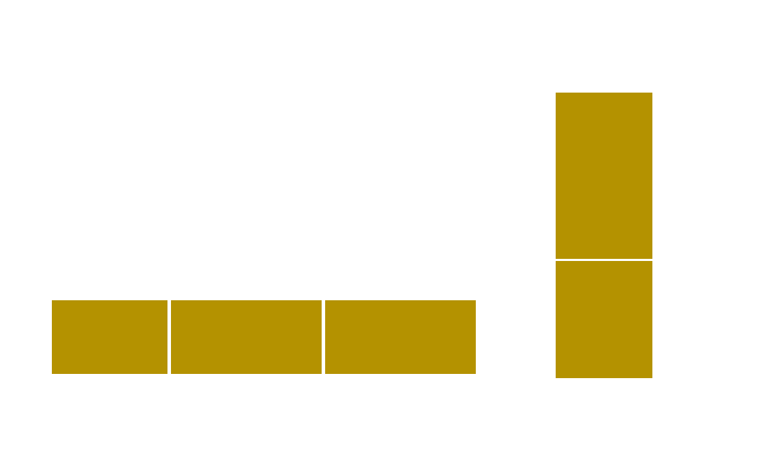 现在请你把目光聚焦在左下角那 3 个环形图上。对于这个区域,采用相同布局方式继续切分当然是可以做到的,但是效率并不高。下面这张图上,我把这个区域所需的布局操作用黄色线画出来了。你可以数一数,一共需要 9 次操作才能完成对这个小区域的布局,而在前面的图中,我们布局整个页面也才花了 8 次操作。