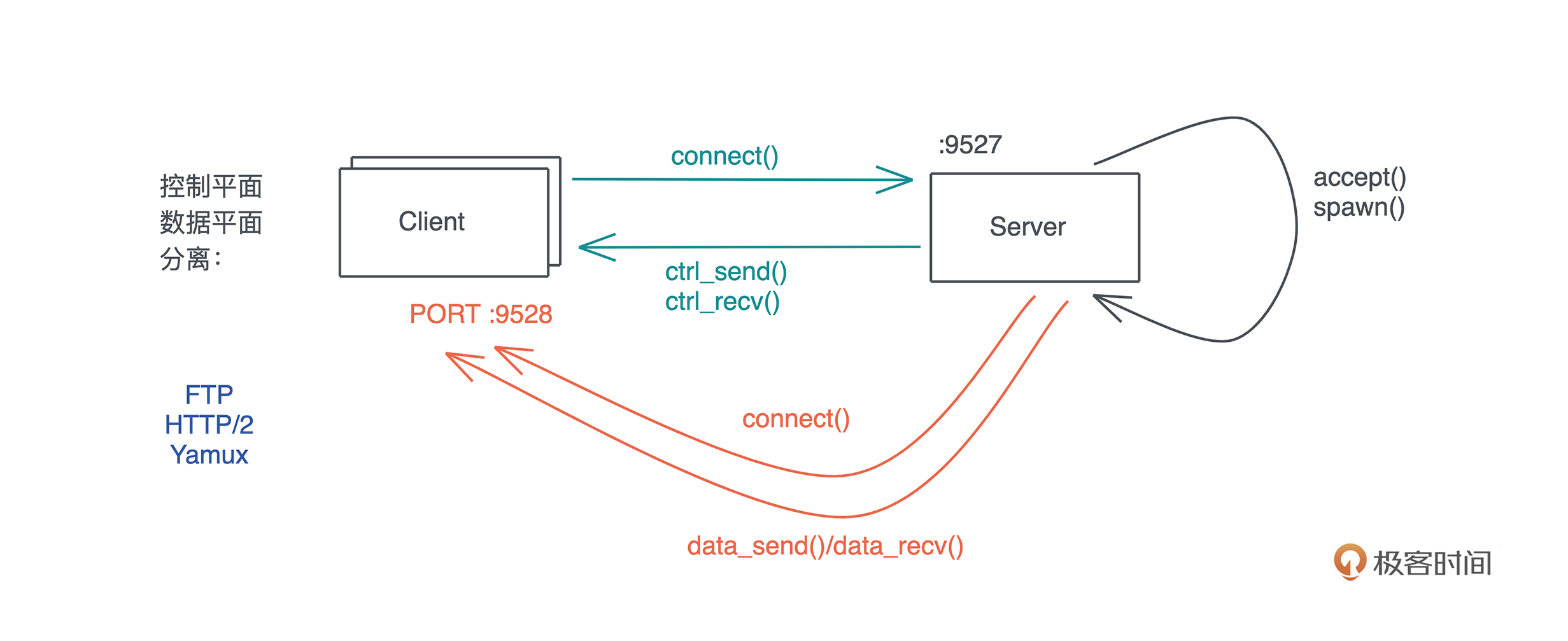 HTTP/2 和借鉴了HTTP/2 的用于多路复用的 Yamux 协议,虽然运行在同一个 TCP 连接之上,它们在应用层也构建了类似的控制平面和数据平面。