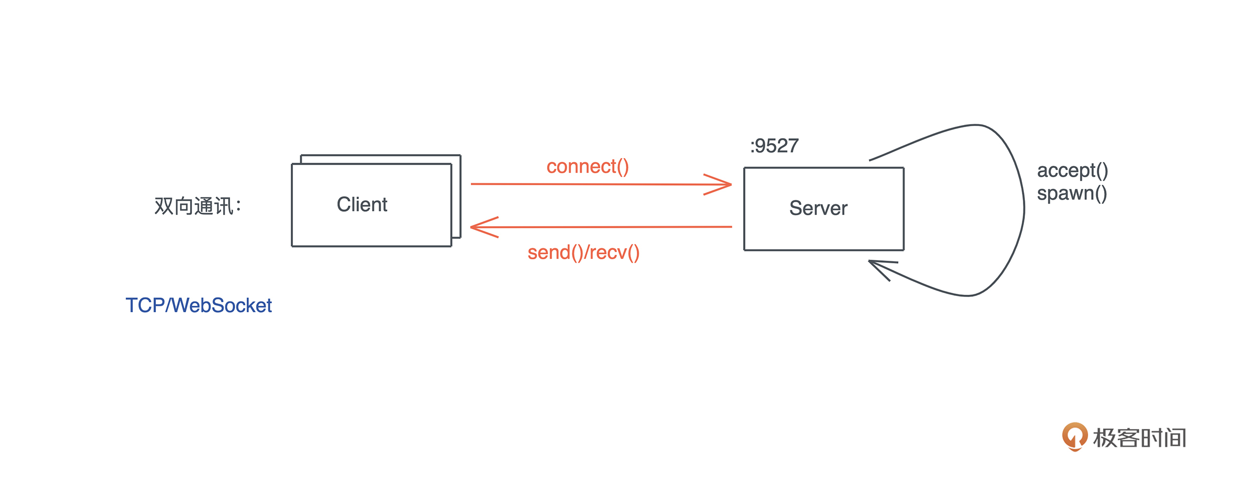 上一讲 TCP 服务器的例子里,所做的都是双向通讯。这是最典型的一种通讯方式:-