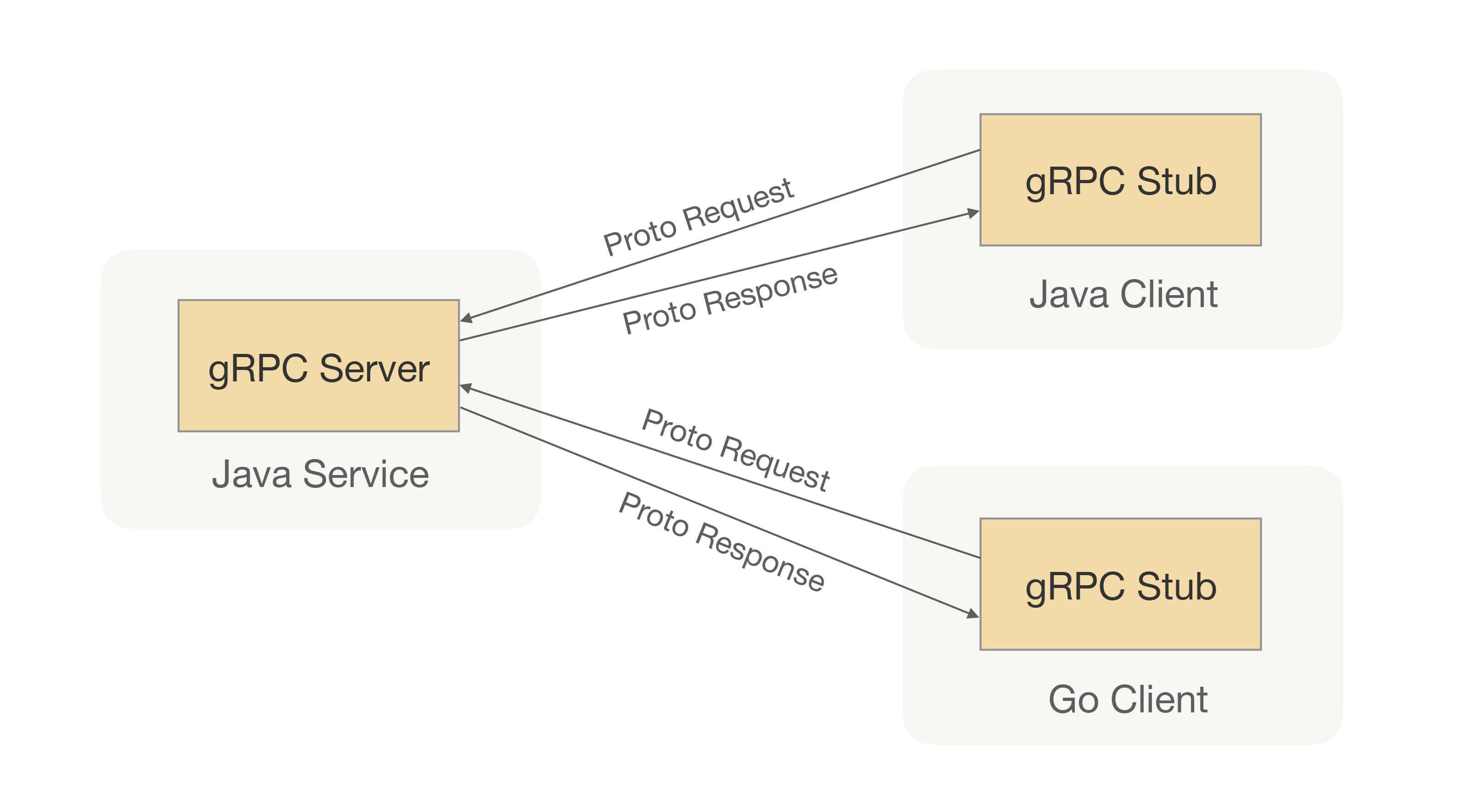 gRPC 是由 Google 开发并且开源的一款高性能、跨语言的 RPC 框架,当前支持 C、Java 和 Go 等语言,当前 Java 版本最新 Release 版为 1.27.0。gRPC 有很多特点,比如跨语言,通信协议是基于标准的 HTTP/2 设计的,序列化支持 PB(Protocol Buffer)和 JSON,整个调用示例如下图所示: