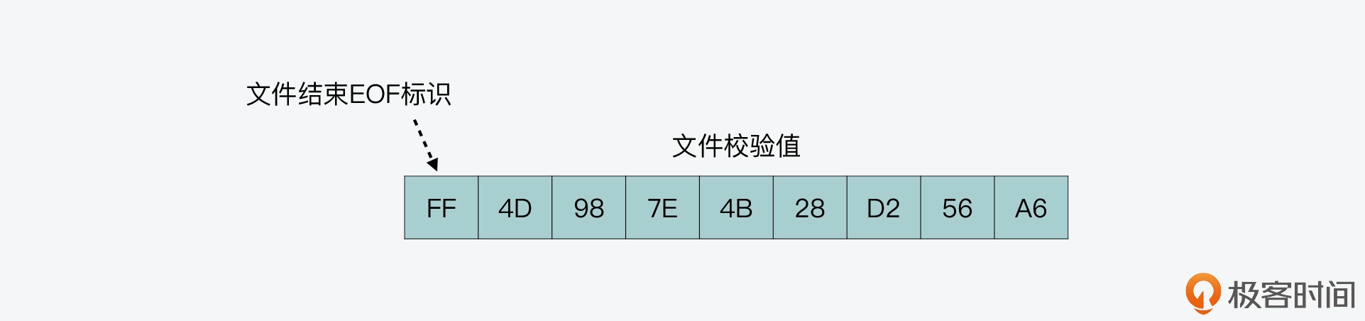 当所有键值对都写入 RDB 文件后,rdbSaveRio 函数就可以写入文件尾内容了。文件尾的内容比较简单,主要包括两个部分,一个是 RDB 文件结束的操作码标识,另一个是 RDB 文件的校验值。