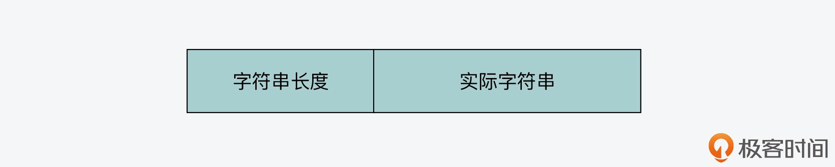 第二步,rdbSaveAuxField 函数调用 rdbSaveRawString 函数(在 rdb.c 文件中)写入属性信息的键,而键通常是一个字符串。rdbSaveRawString 函数是用来写入字符串的通用函数,它会先记录字符串长度,然后再记录实际字符串,如下图所示。这个长度信息是为了解析 RDB 文件时,程序可以基于它知道当前读取的字符串应该读取多少个字节。