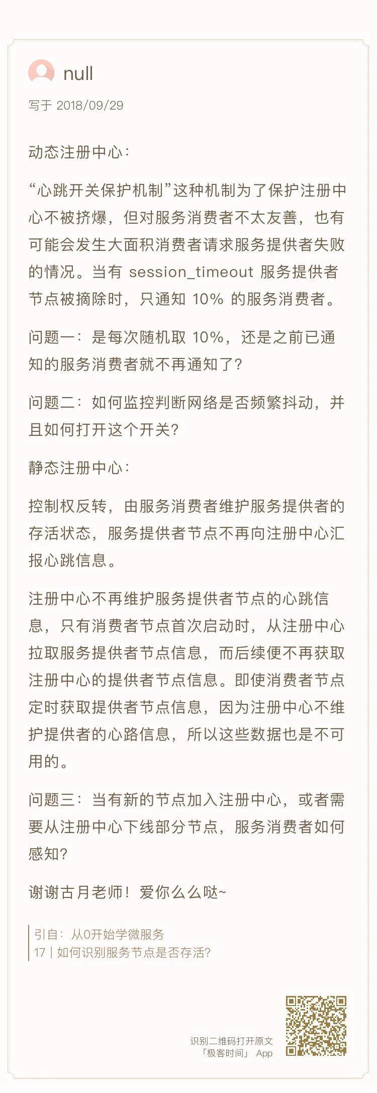 你好,我是胡忠想。今天我继续来给同学们做答疑,第二期答疑主要涉及微服务架构、注册中心和负载均衡算法,需要一定的基础,如果对这些内容不了解,可以先返回[专栏第14期]、[第17期]和[第18期]复习一下。