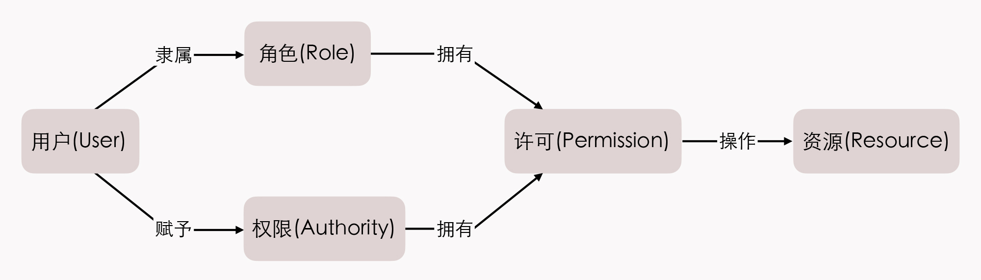 其中,你可能发现了,除了前面提到的用户、角色和资源以外,图上还出现了一个新的名词“许可”(Permission)。
