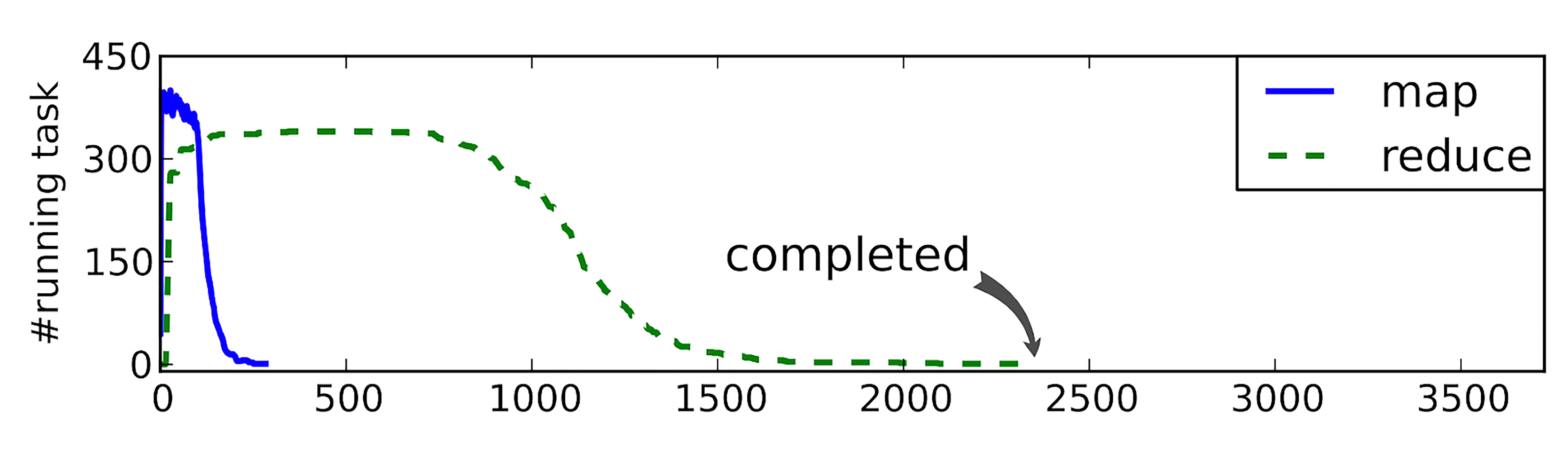 当然它也有改进方法。掉队者问题可以通过MapReduce的性能剖析(profiling)发现。 如下图所示,箭头处就是掉队的机器。