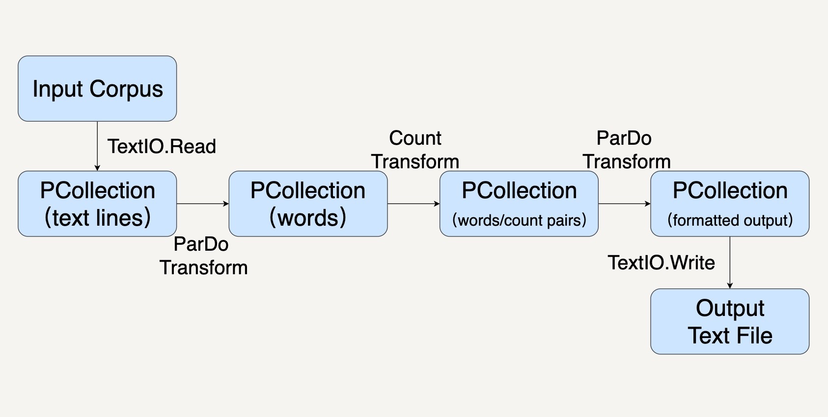 PCollection<String> words = lines.apply(ParDo.of(new ExtractWordsFn()));