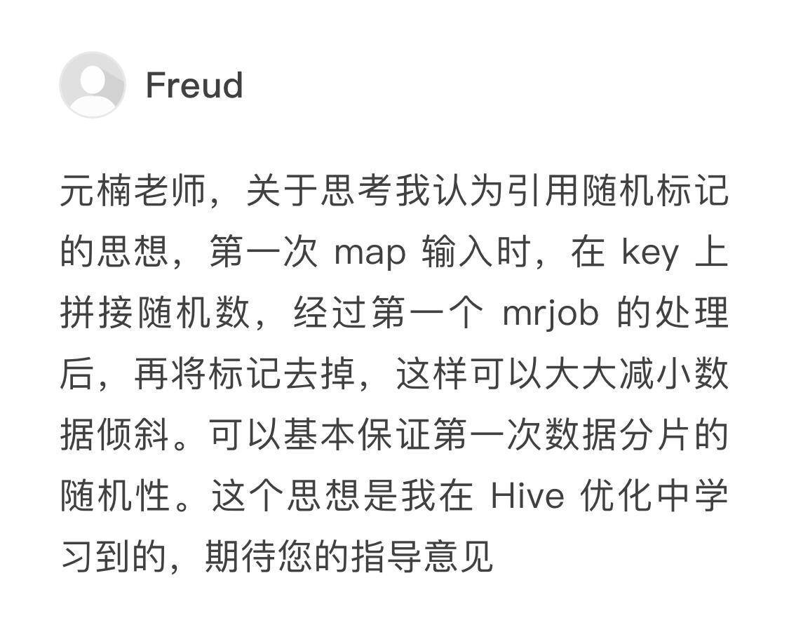 而Freud的想法是引用随机标记来保证数据分片的随机性。但这里要保证数据的均匀可重复才行。如果你在shard2上的任务失败,你需要能够还原出错的任务并进行重试。