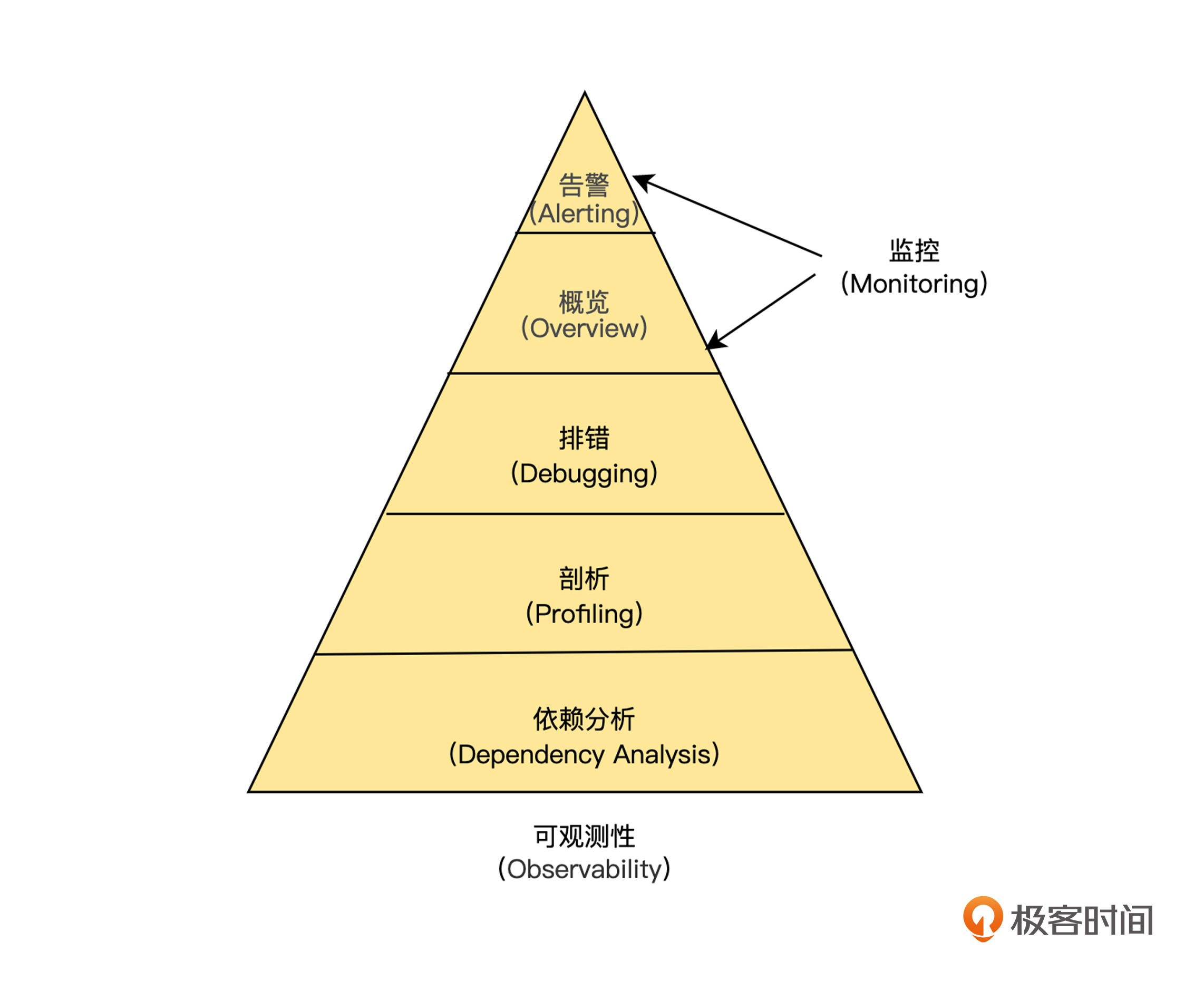 可观测性通过排错、剖析与依赖分析,这三个部分来主动发现故障,具体如下。
