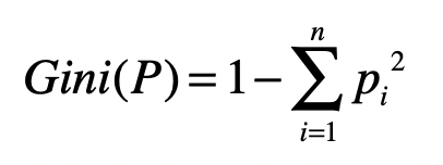 其中,\(n\)为集合\(P\)中所包含的不同分组(或分类)数量。如果集合\(P\)中所包含的不同分组越多,那么这个集合的基尼指数越高,纯度越低。