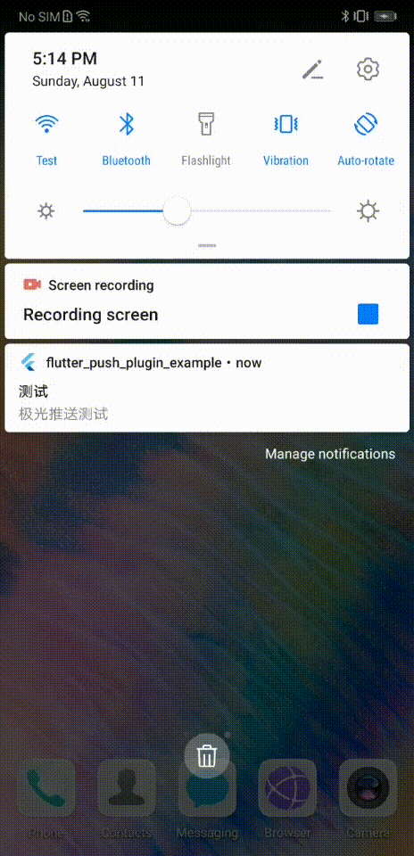 点击发送预览并确认,可以看到,我们的应用不仅可以被来自极光的推送消息唤醒,还可以在Flutter应用内收到来自原生宿主转发的消息内容: