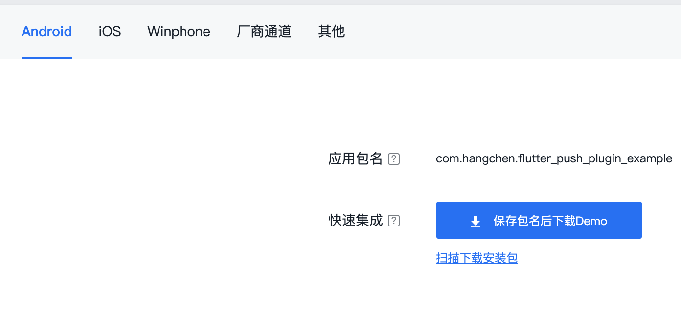 首先,根据example的Android工程包名,完成Android工程的推送注册:
