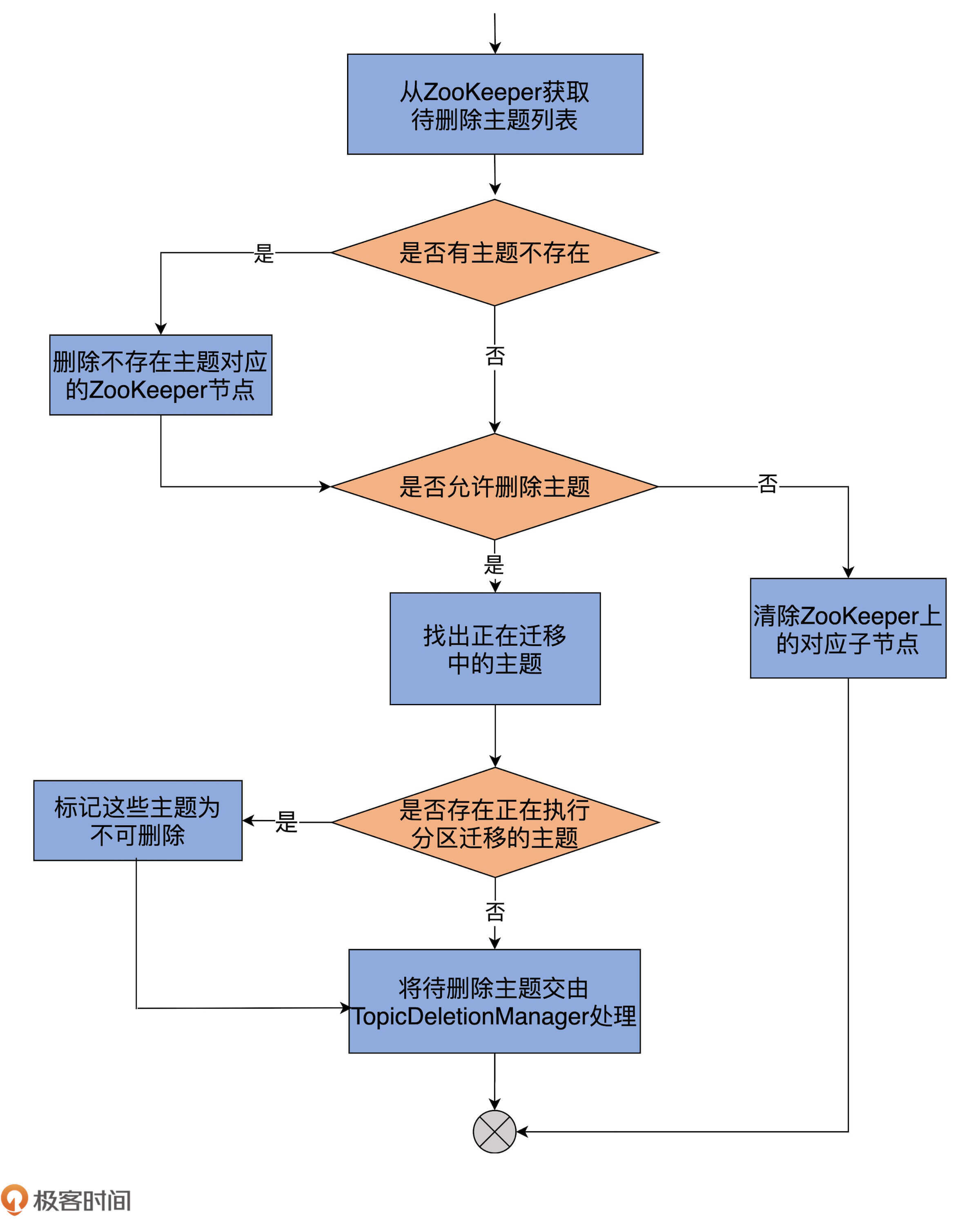 这里的TopicDeletionManager是Kafka专门负责删除主题的管理器,下节课我会详细讲解它的代码实现。