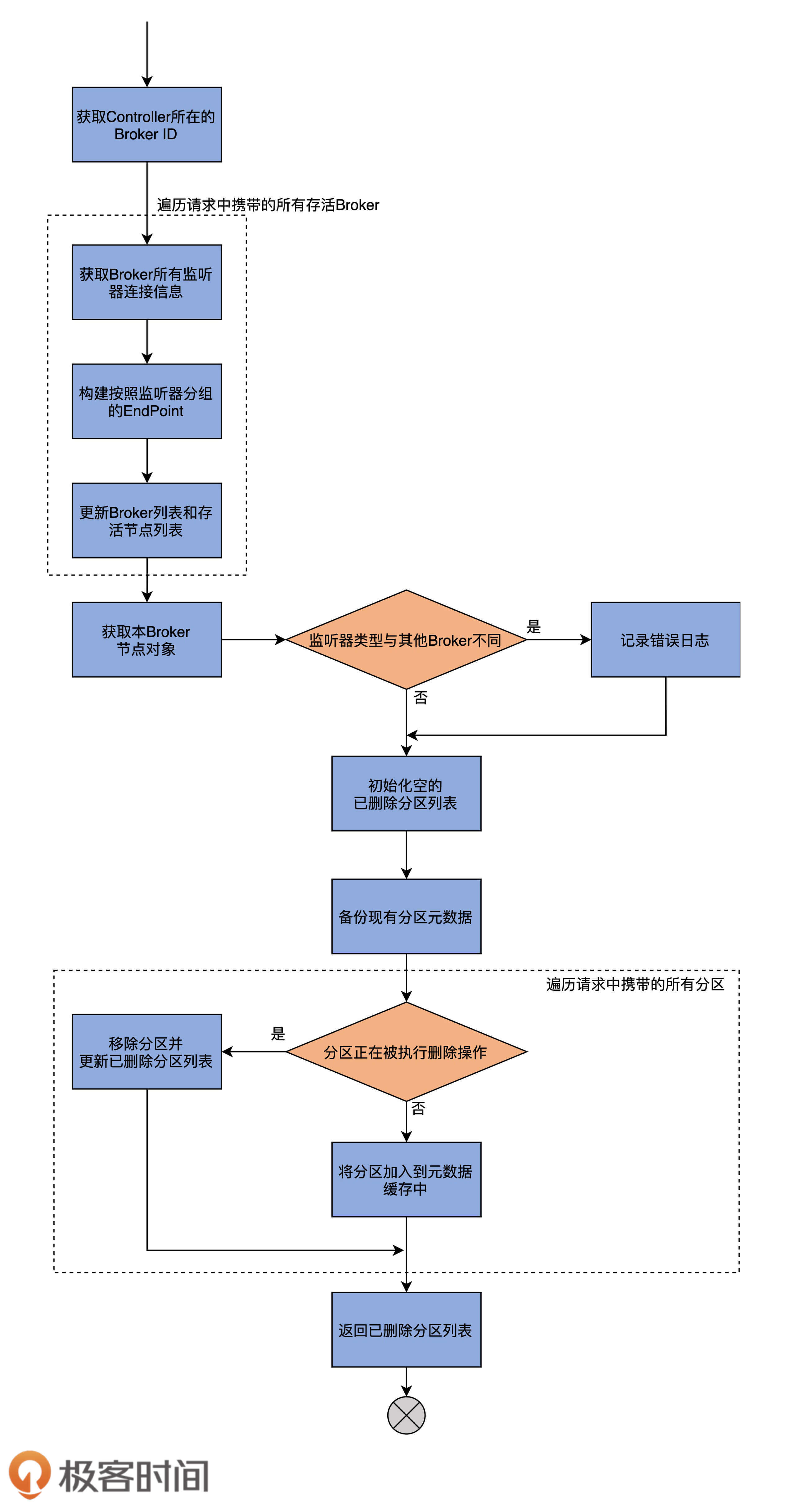 updateMetadata方法的主要逻辑,就是读取UpdateMetadataRequest请求中的分区数据,然后更新本地元数据缓存。接下来,我们详细地学习一下它的实现逻辑。