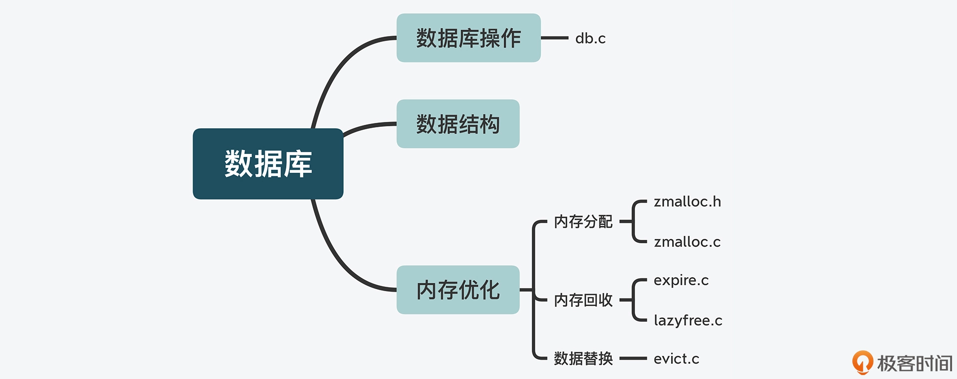 同样,这里我也把和 Redis 数据库数据类型与操作相关的功能模块及代码文件,总结成了一张图,你可以看下。