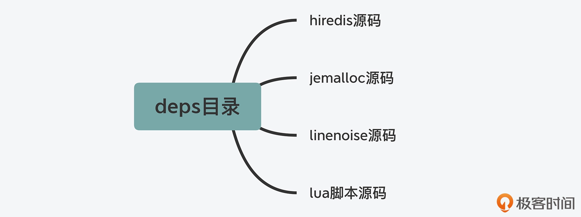 我举个简单的例子,glibc 库中实现的内存分配器的性能就不是很高,它的内存碎片化情况也比较严重。因此为了避免对系统性能产生影响,Redis 使用了 jemalloc 库替换了 glibc 库的内存分配器。可是,jemalloc 库本身又不属于 Redis 系统自身的功能,把它和 Redis 功能源码放在一个目录下并不合适,所以,Redis 使用了专门的 deps 目录来保存这部分代码。