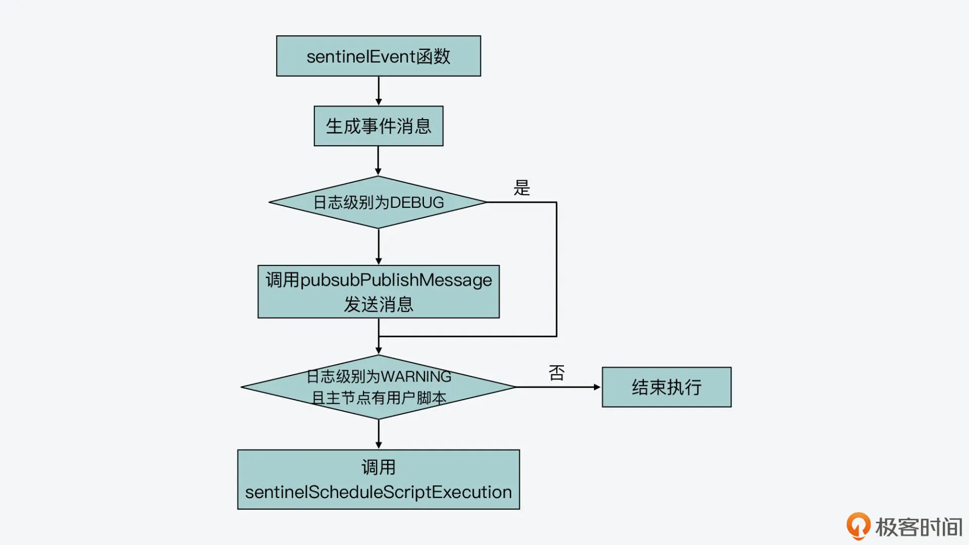 下面的图展示了 sentinelEvent 函数的执行流程,你可以再回顾下。