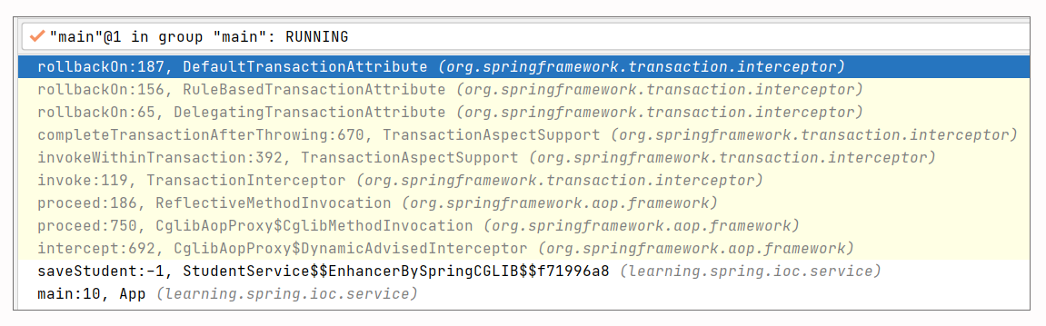 我们通过 debug 沿着 saveStudent 继续往下跟,得到了一个这样的调用栈: